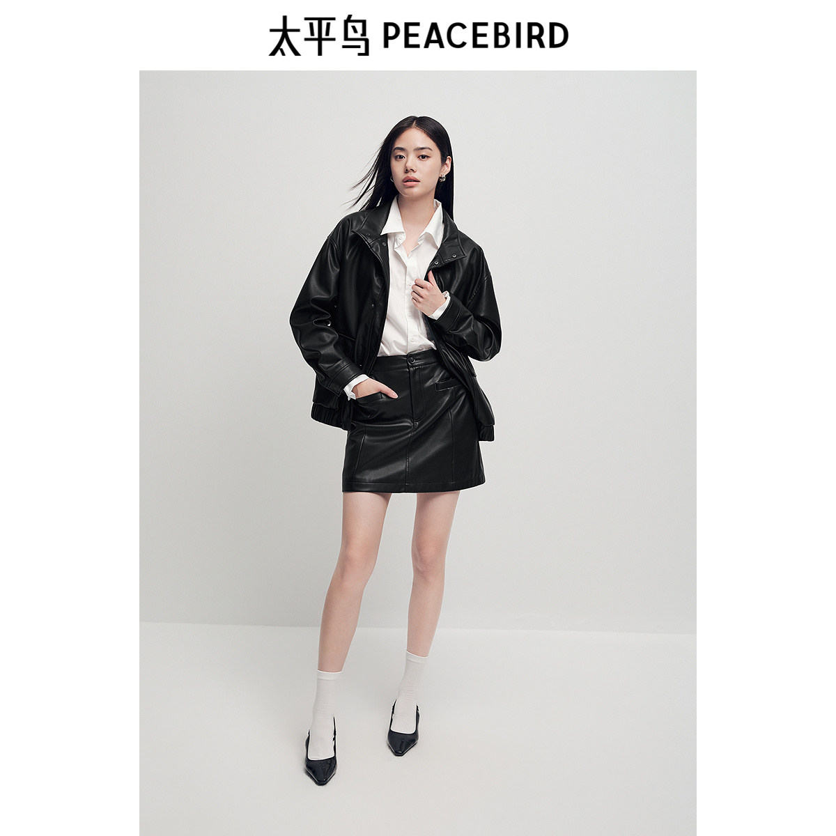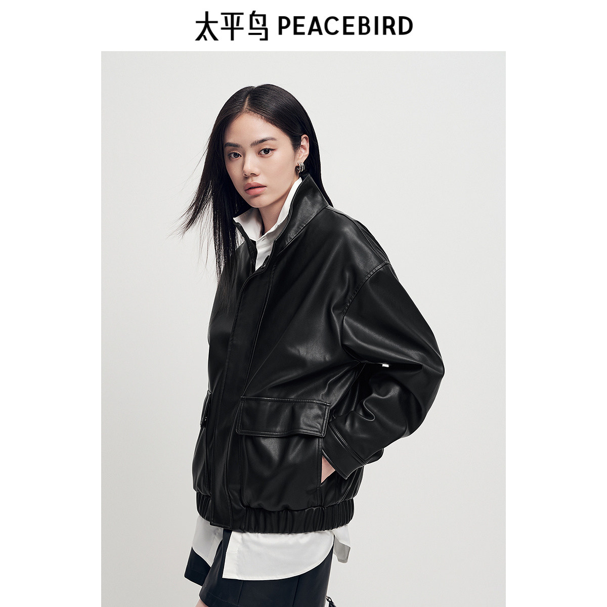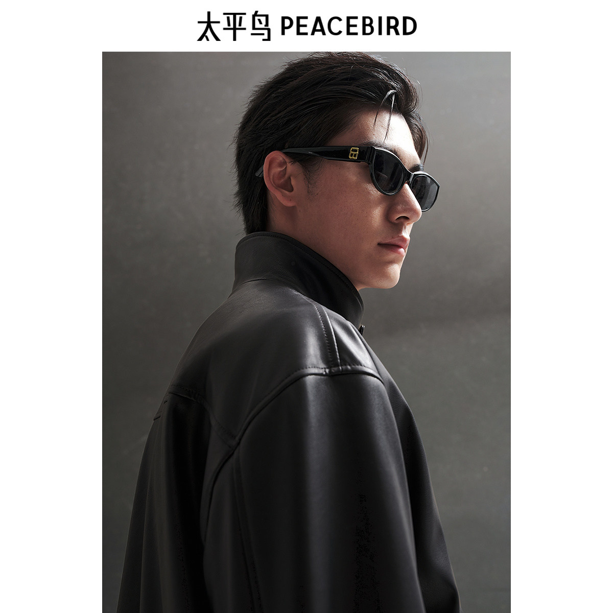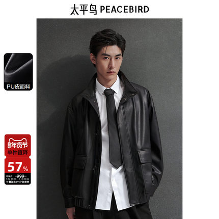 太平鸟男装立领复古PU皮夹克冬外套宽松潮流休闲阔外套时尚夹克