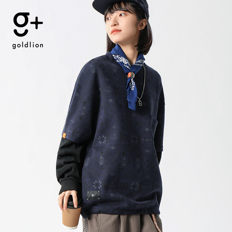 金利来g+户外图腾八角星纹印花假两件T恤圆领长袖上衣男