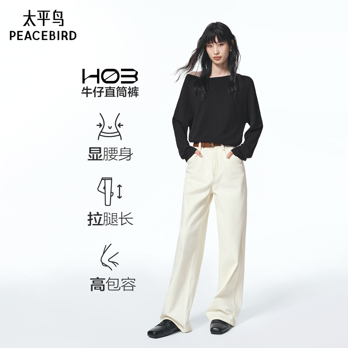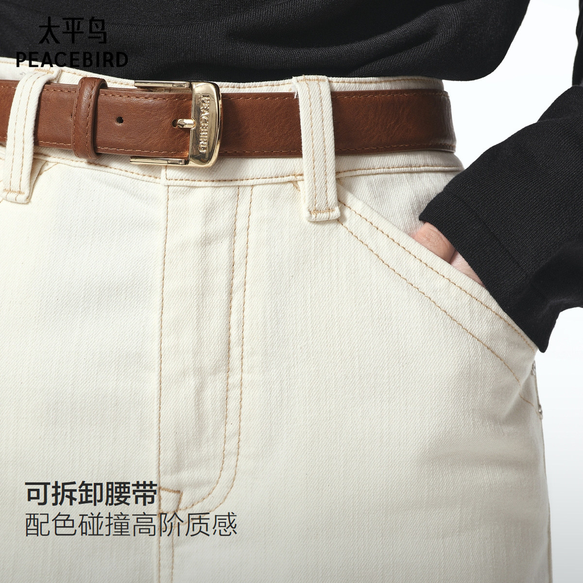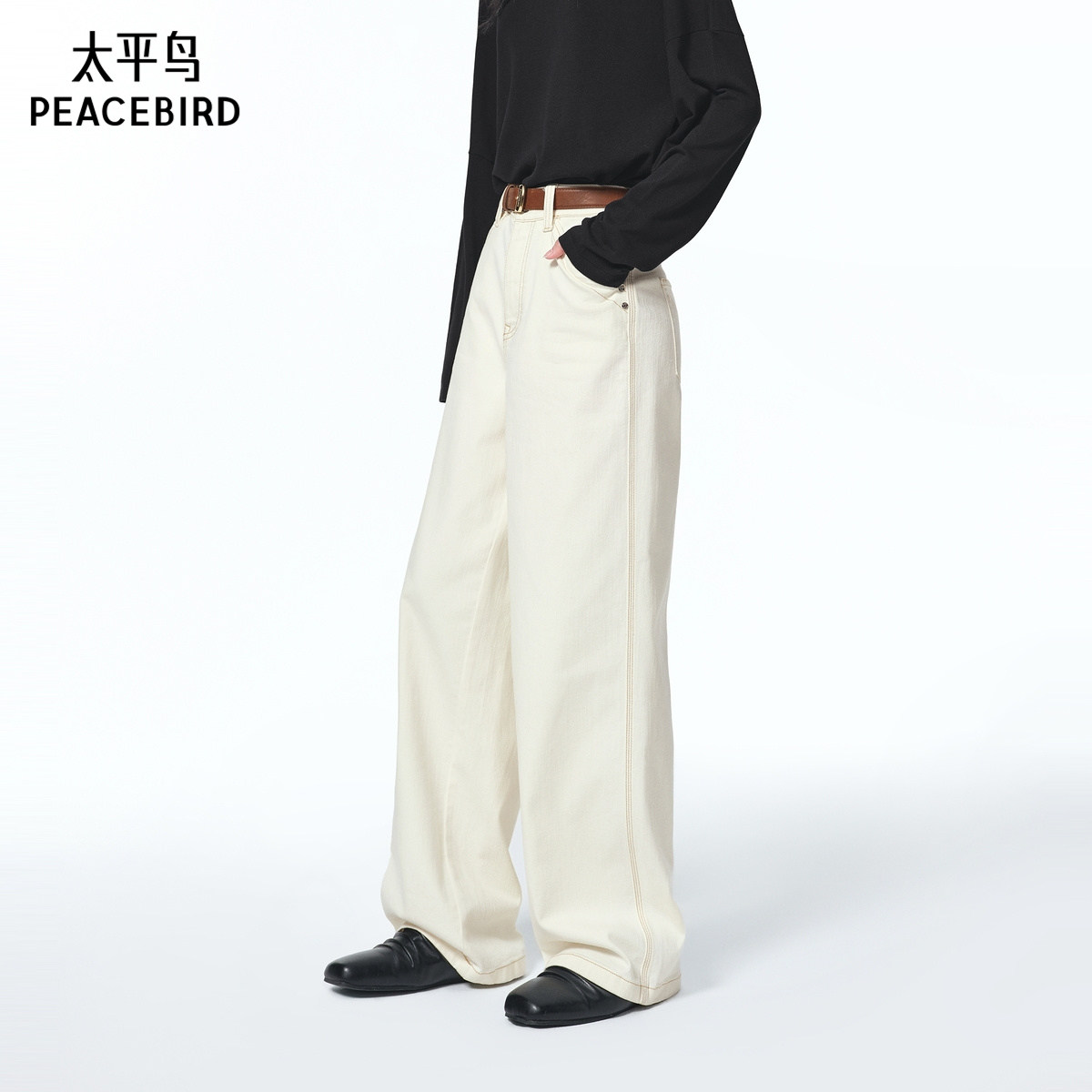 商场同款 太平鸟2025年秋季新款撞色腰带白色阔腿牛仔裤A1HAF3368