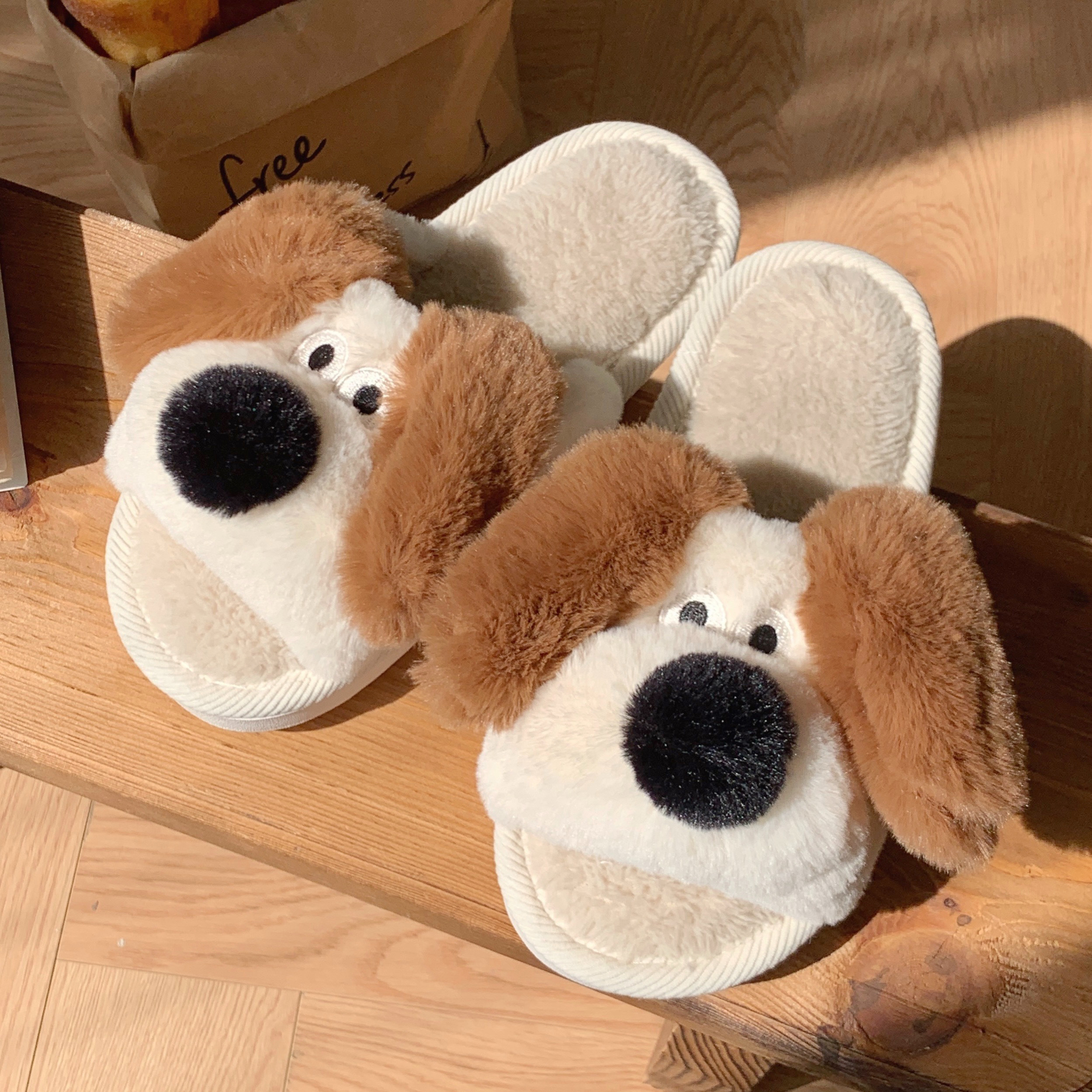 细细条 正版掌门狗棉拖鞋男女秋冬季韩版家居室内卡通一字毛毛拖