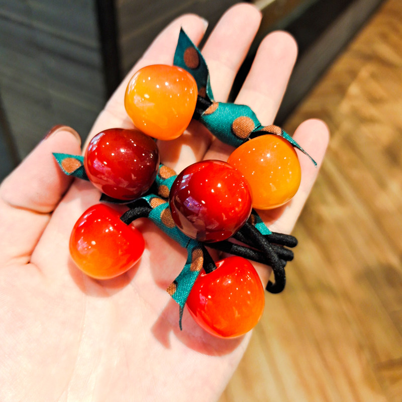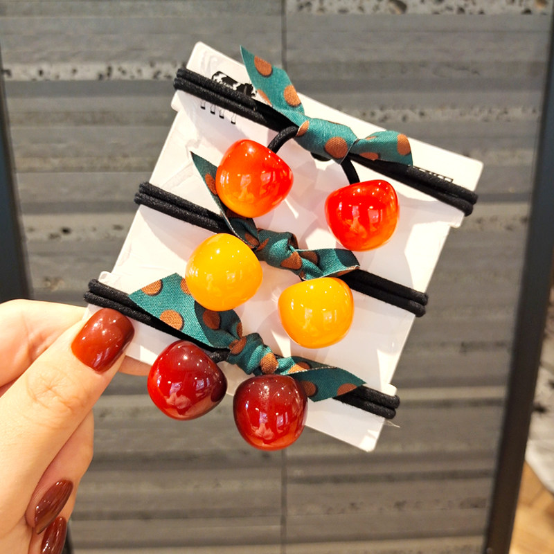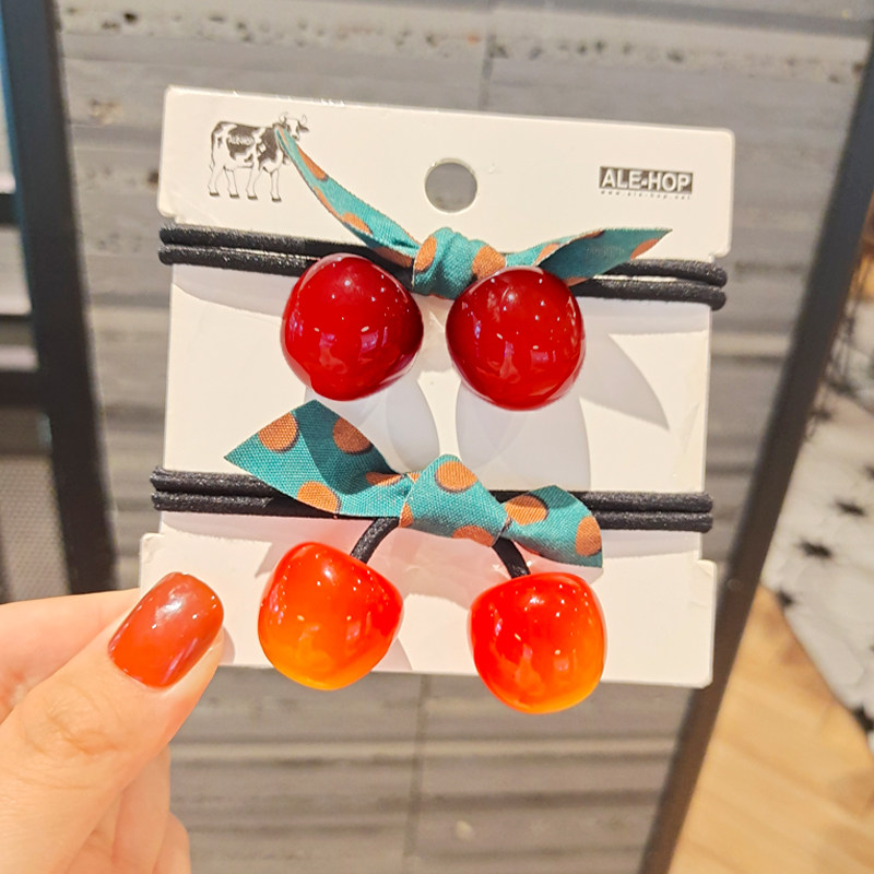 甜美百搭蝴蝶结樱桃头绳发圈高弹力扎头发皮筋网红盘发绳皮套头饰
