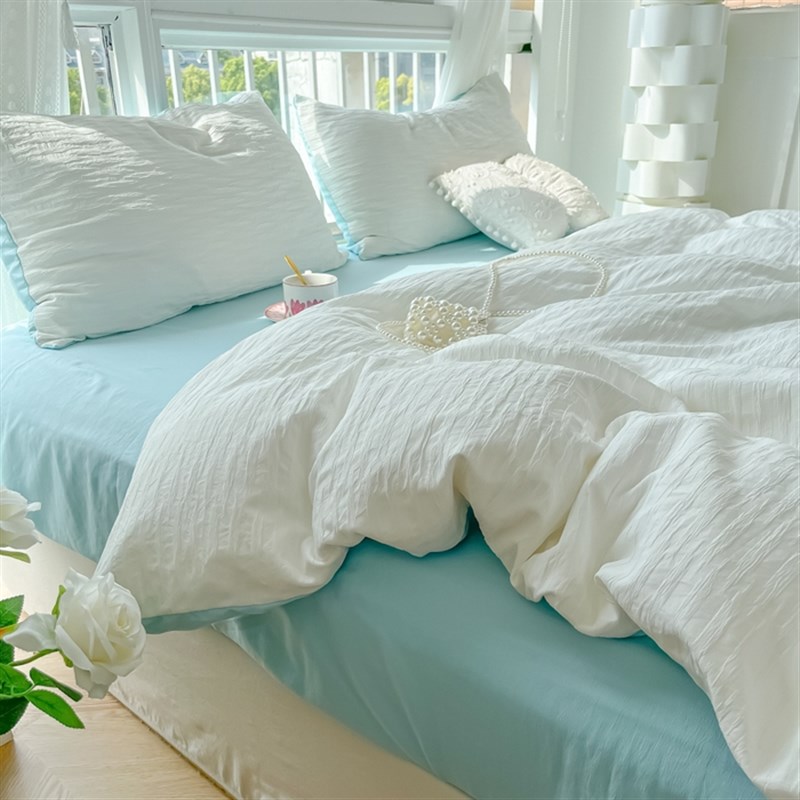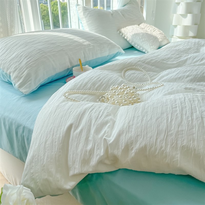 2024纯色双层纱泡泡纱水洗棉四件套床笠款床单被套学生宿舍三件套