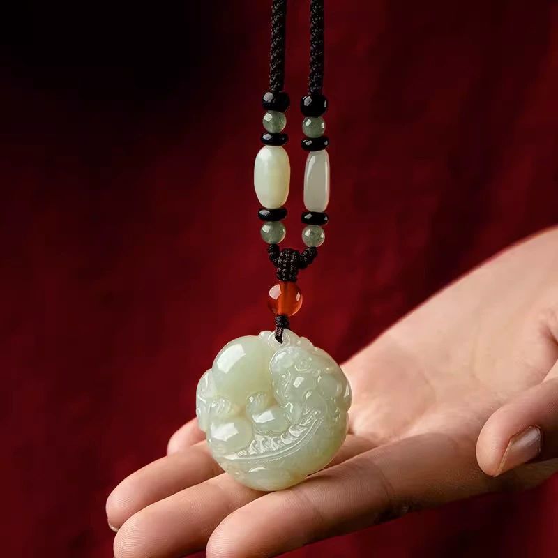 天然和田玉貔貅吊坠男女毛衣链高档玉坠玉石玉佩情侣挂绳项链配饰