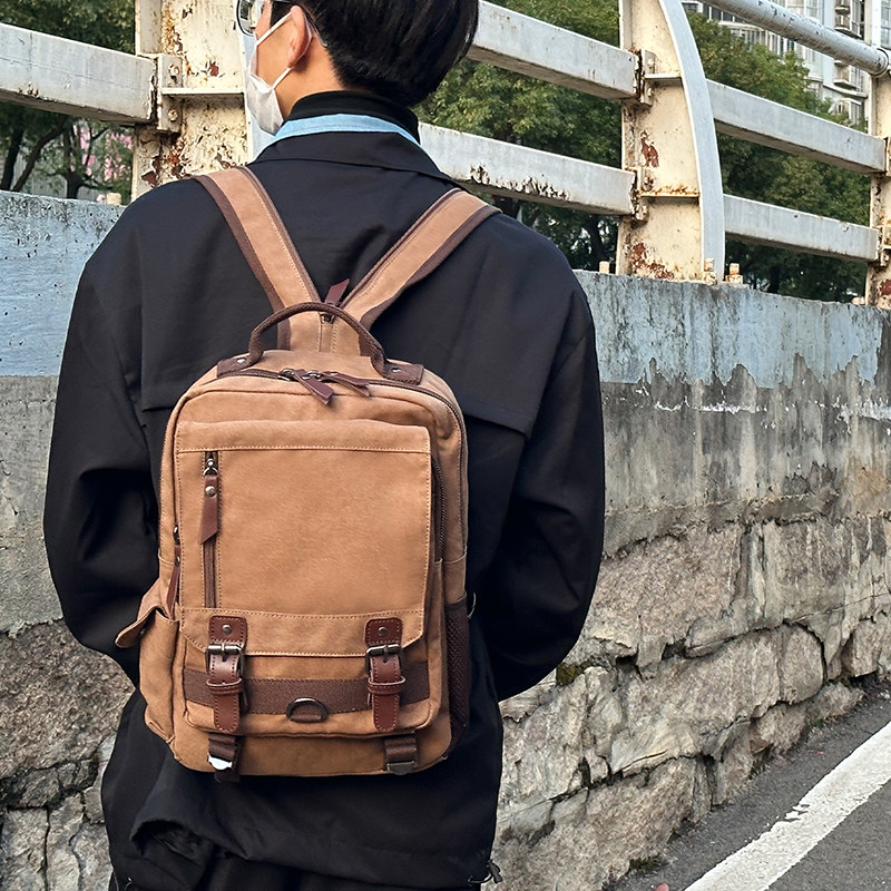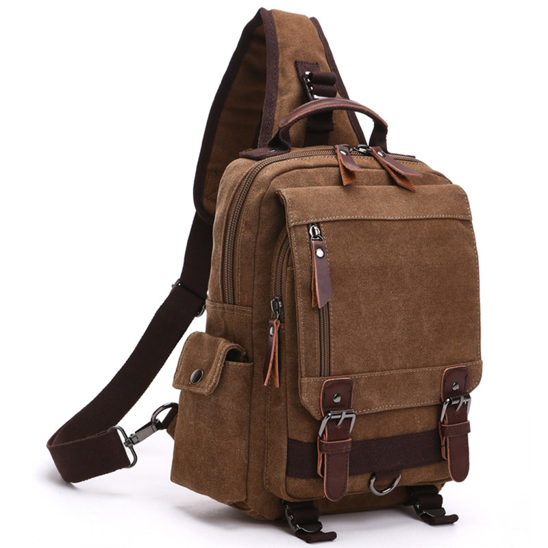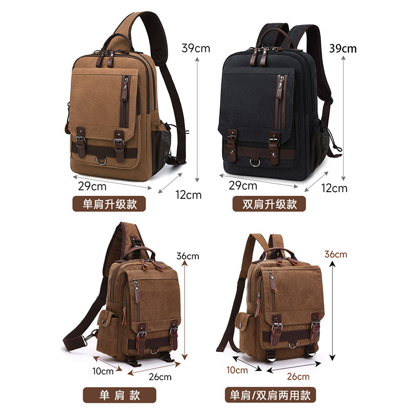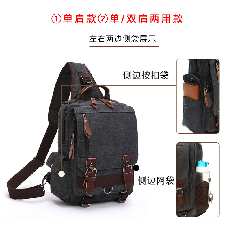 男士胸包大容量单肩斜挎包多功能双肩包复古帆布通勤电脑双肩背包