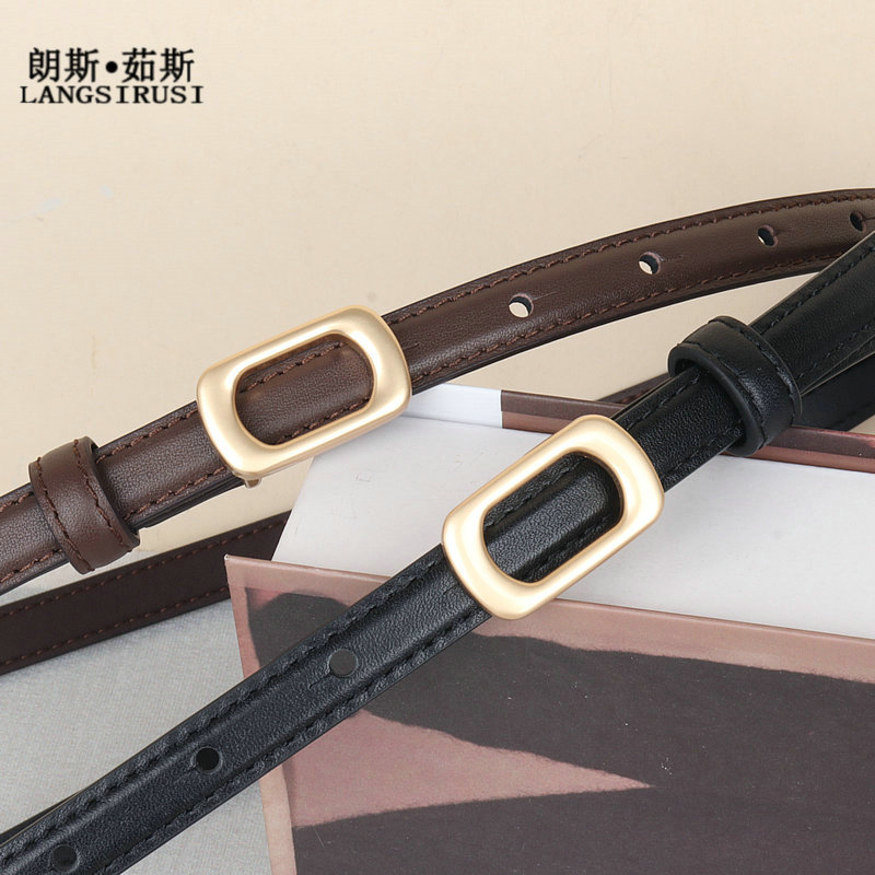 秦~岚同款 2025年新款女士小皮带头层牛皮腰带配裙子装饰黑色真皮