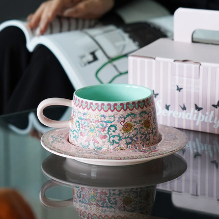 岸梵高颜值复古陶瓷咖啡杯精致杯碟礼盒套装下午茶伴手礼喝水杯子