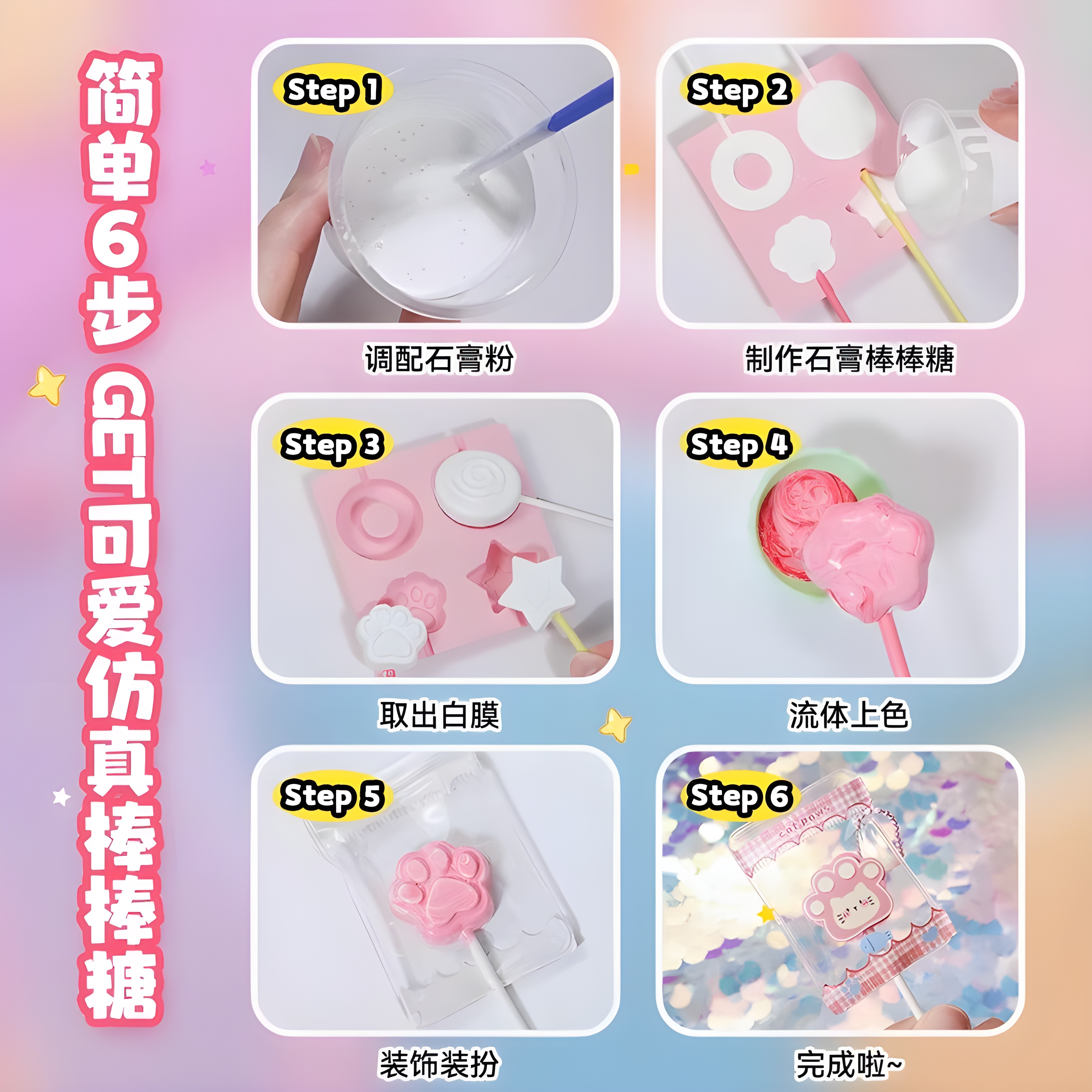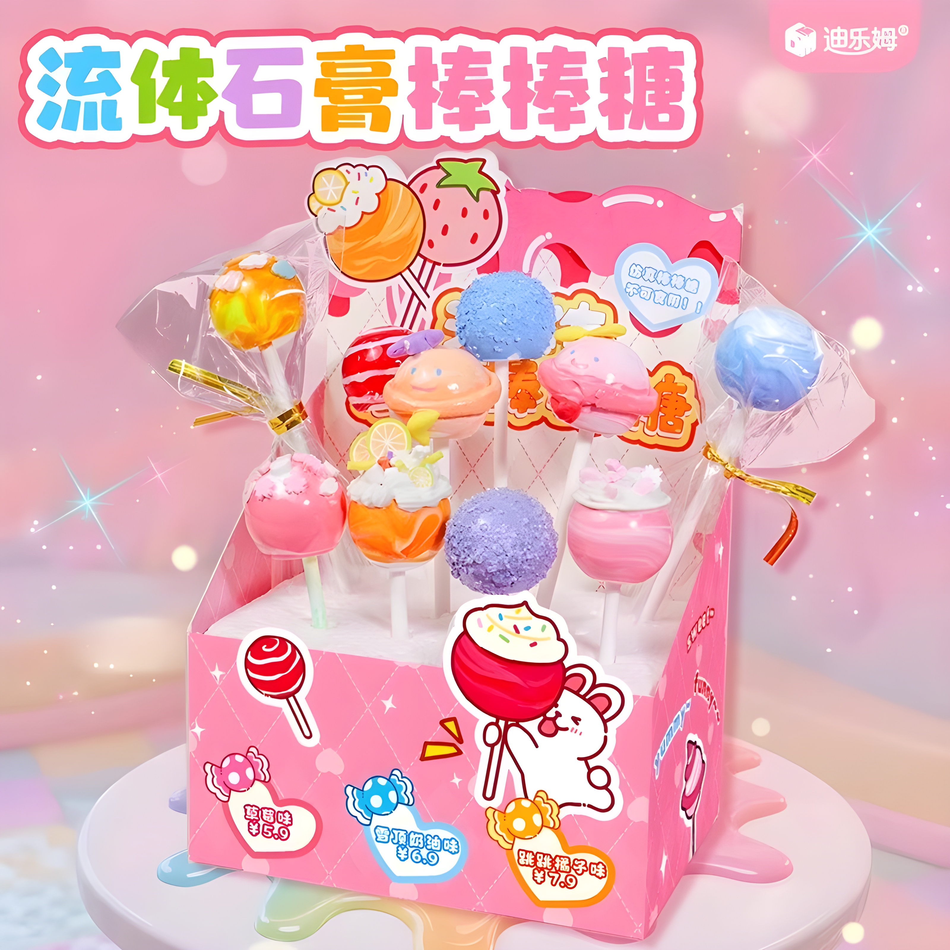 DIY流体石膏棒棒糖手工食玩2025新款立体过家家女孩玩具捏捏礼物3