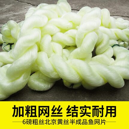 老渔翁渔网单层北京丝网片黄网心0.22半成品粘网6磅0.3丝鱼网网带