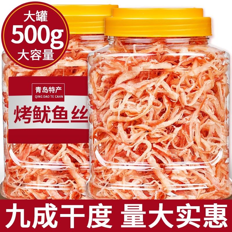 青岛碳烤鱿鱼丝干500g即食零食大包装罐装手撕鱿鱼条特产节日送礼
