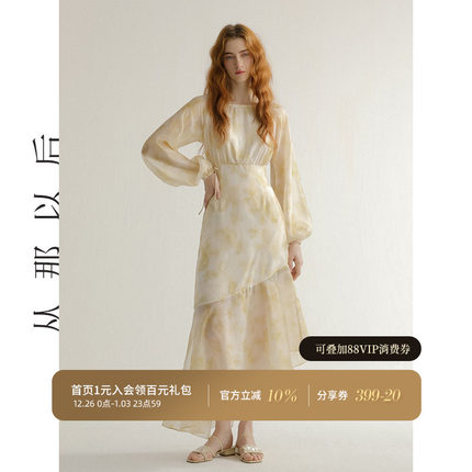 从那以后法式不规则鱼尾长裙碎花裙子长袖仙女风连衣裙女夏季新款