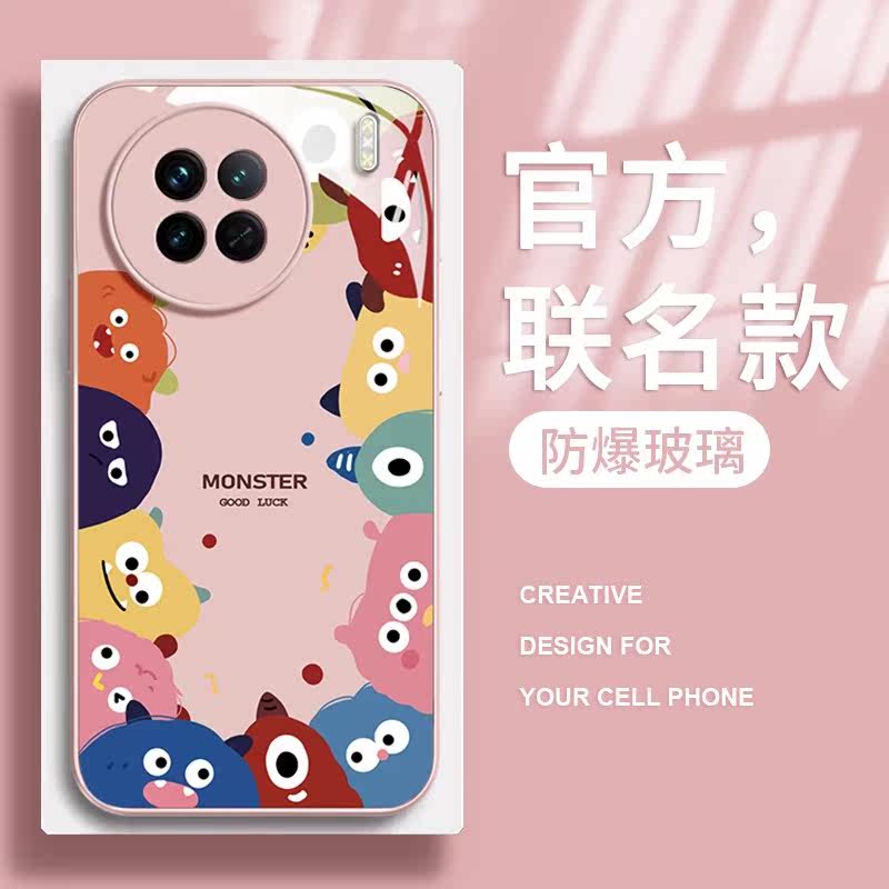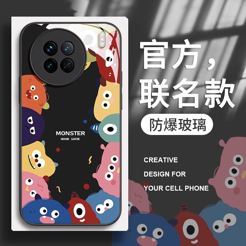 小怪兽家族适用vivox90手机壳新款x80pro全包镜头防摔x70高级感x60玻璃x50x30x27保护套y17女款y76s男por卡通