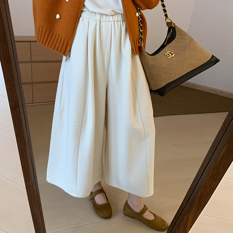 话里松紧腰高弹纯色羊绒呢料八分裤2025秋季新款韩版气质百搭休闲