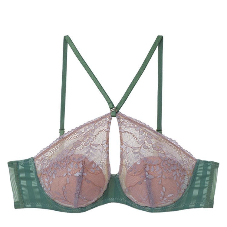 【原版】挂脖内衣女大胸显小胸套装聚拢文胸薄款夏季收副乳防下垂