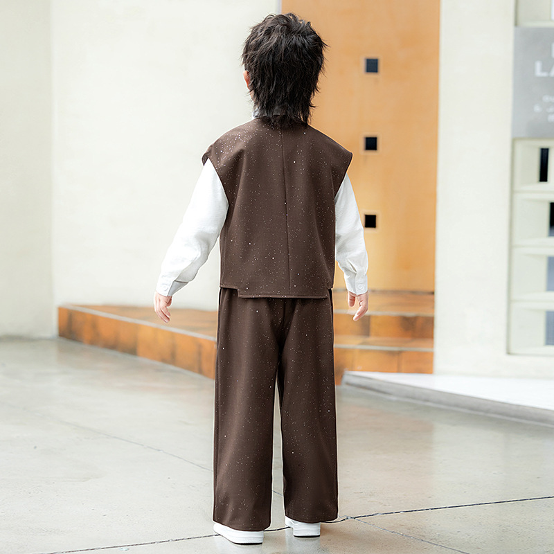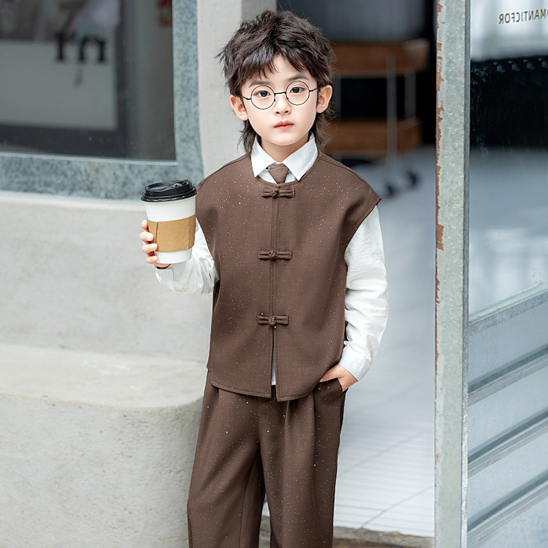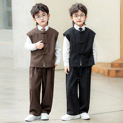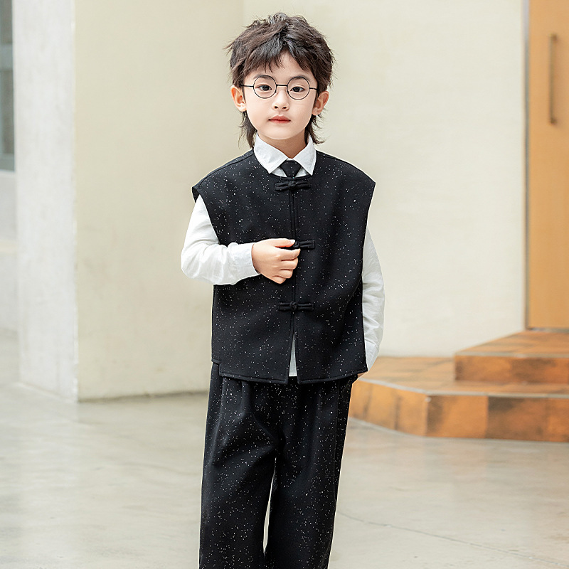 男童新中式马甲套装国风唐装汉服儿童主持人走秀表演礼服西服春秋