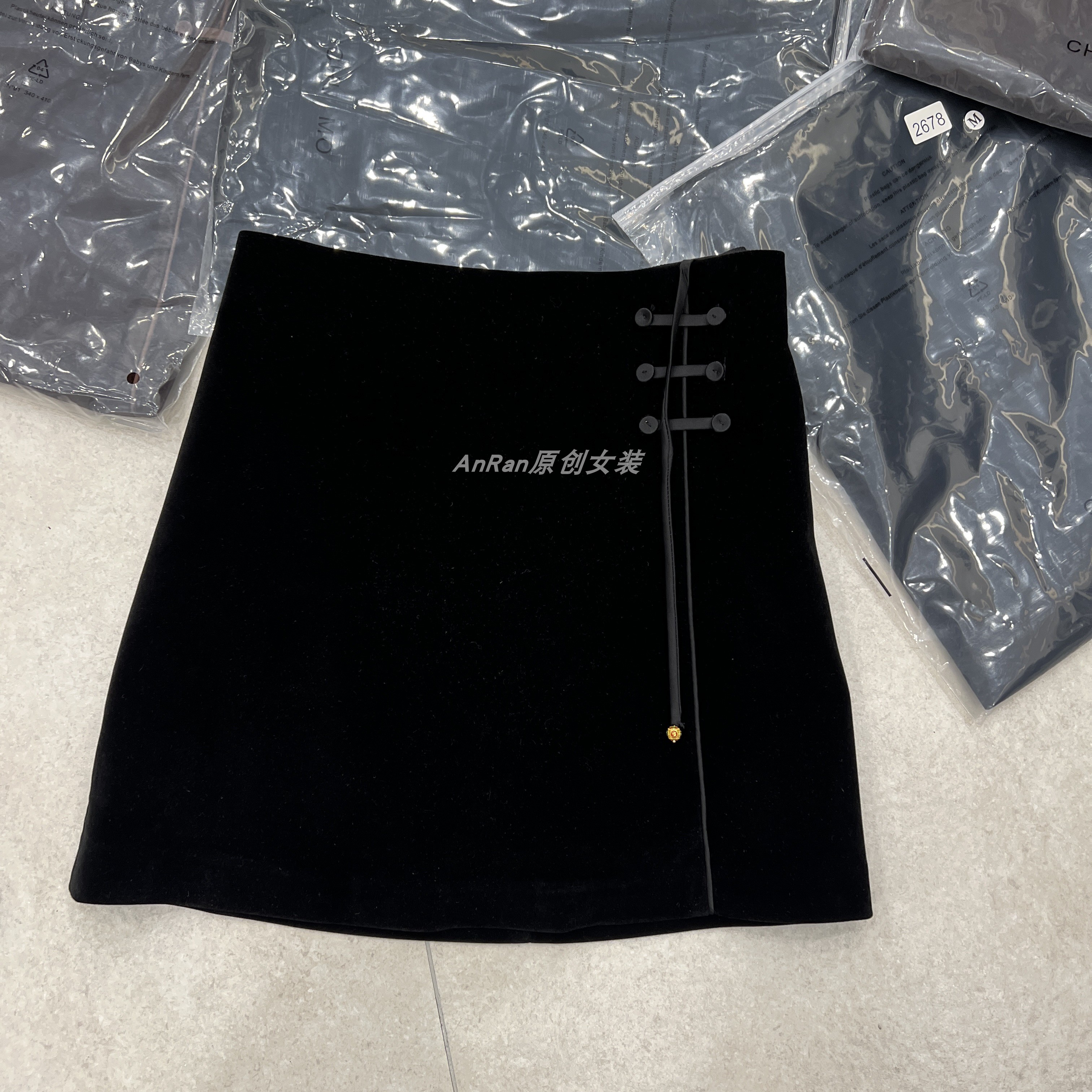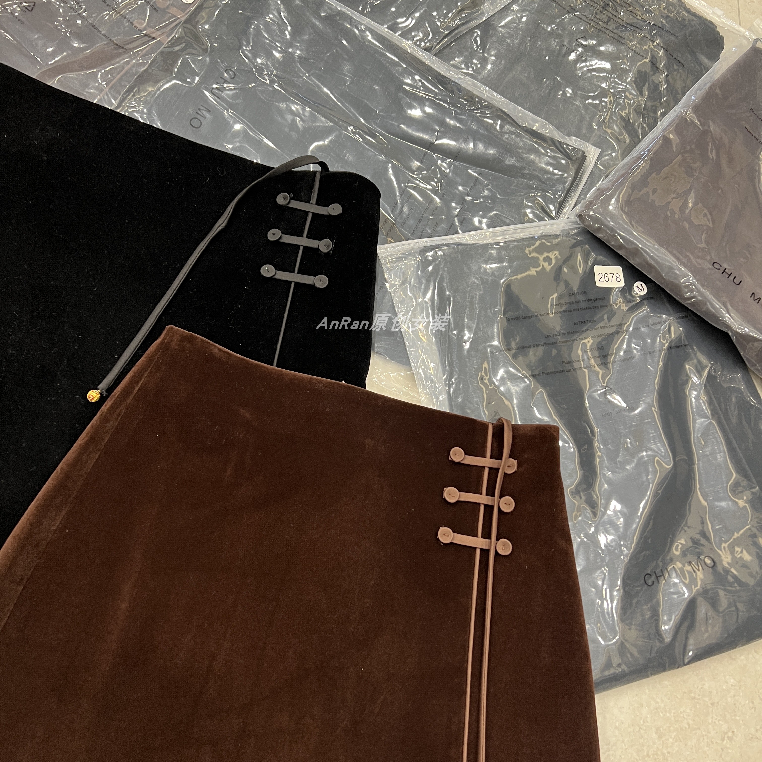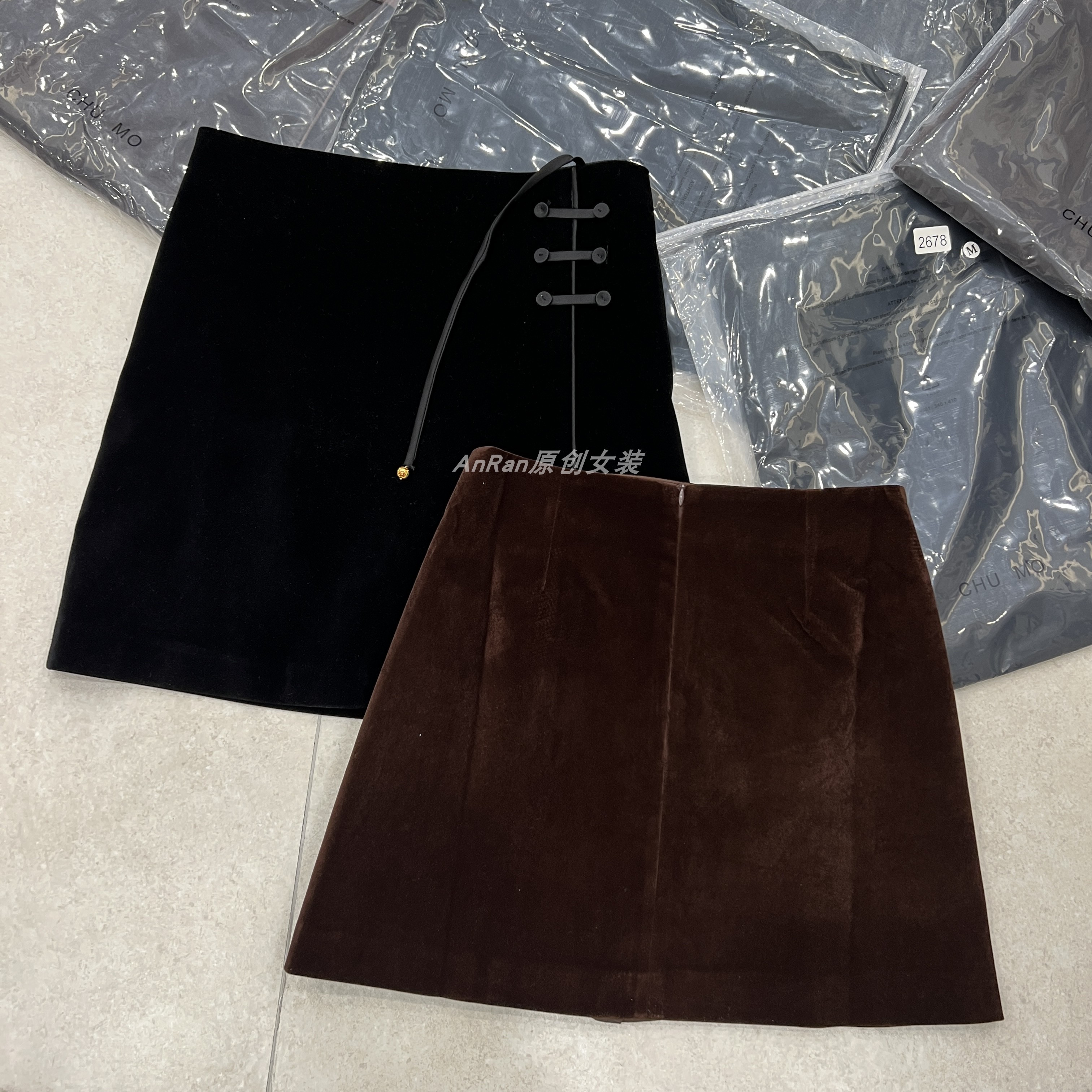 chumo2678春秋新款韩版百搭修身显瘦丝绒侧边纽扣A字半身裙短裙女