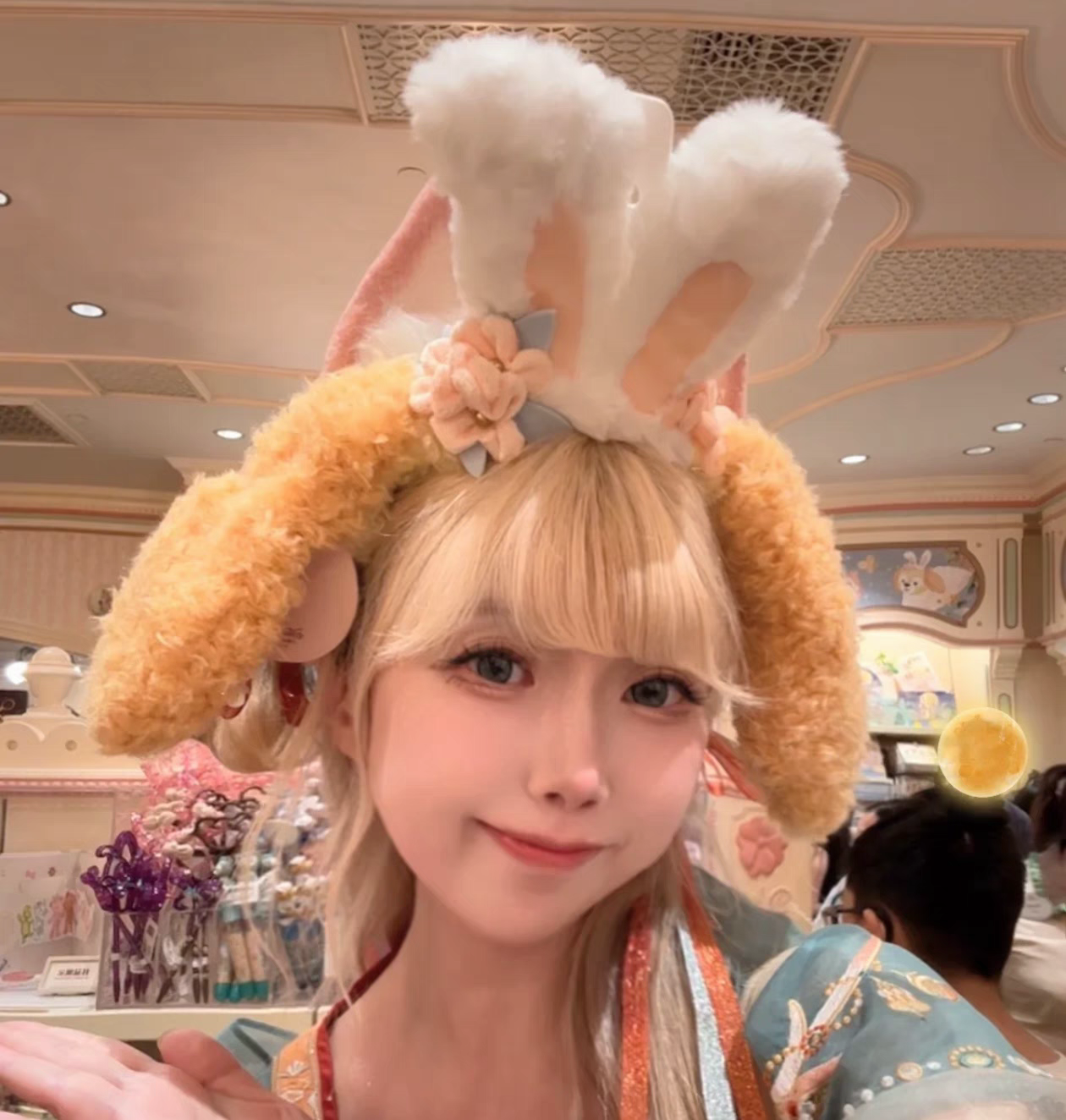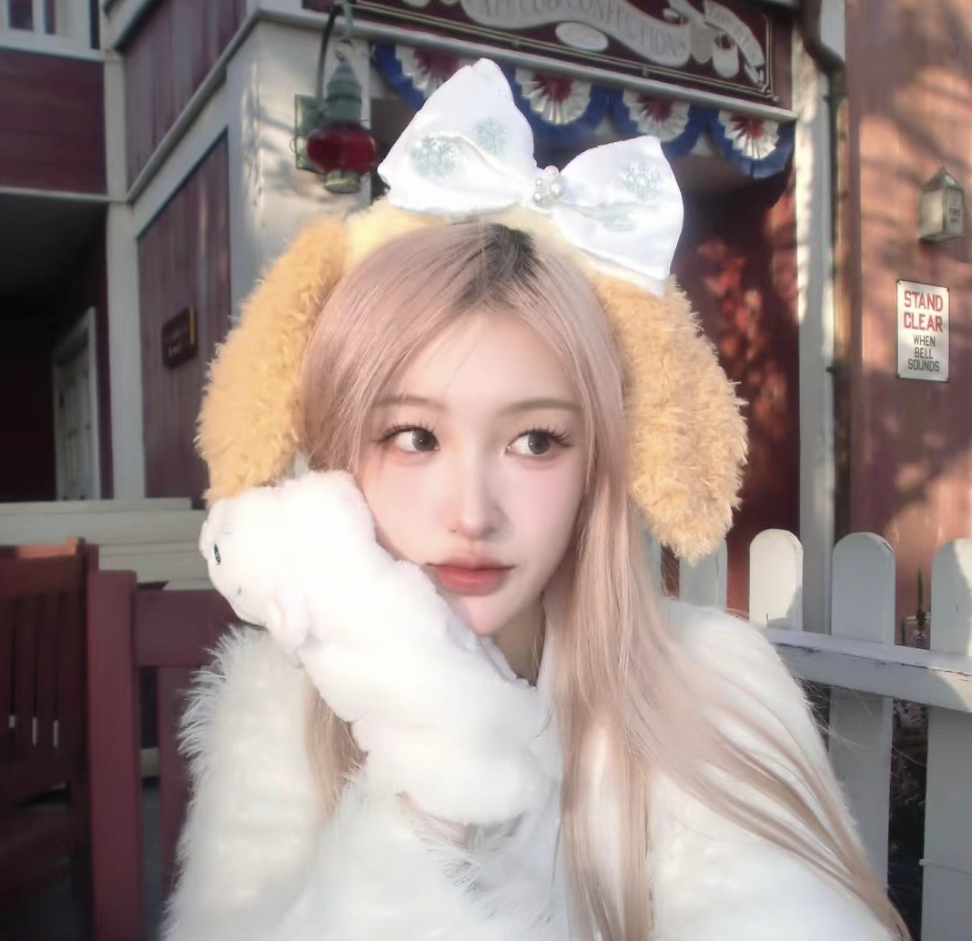 出租上海迪士尼春日可琦安饼饼发箍毛绒发箍头箍头饰发饰租赁可爱