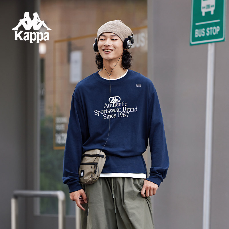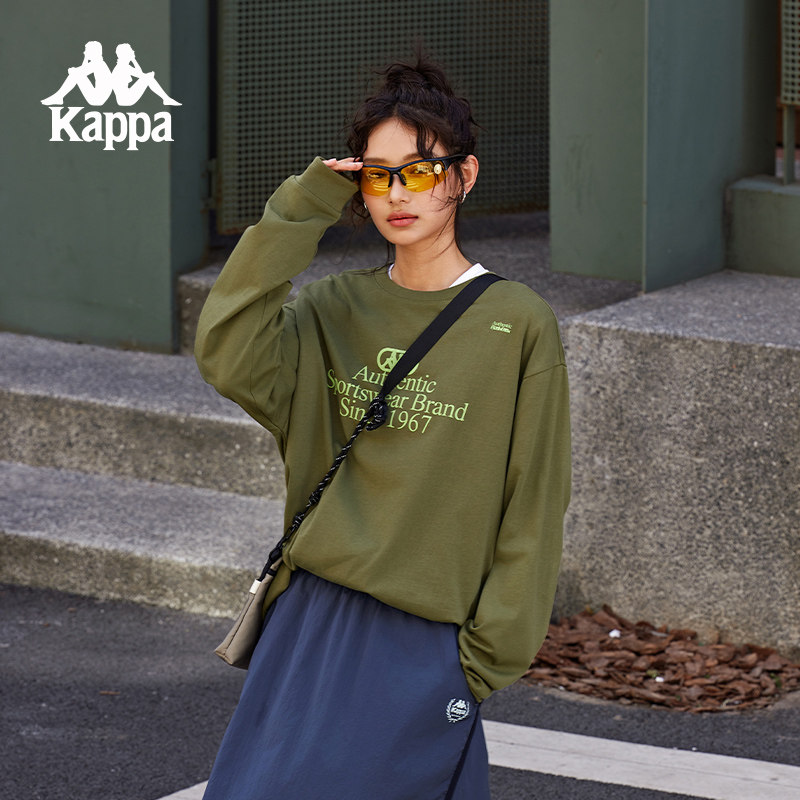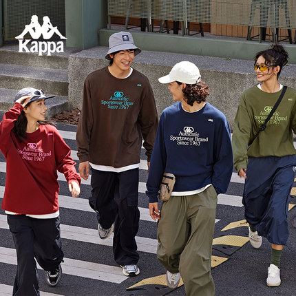 Kappa卡帕背靠背新款复古长袖上衣男纯棉运动t恤情侣卫衣套头衫女
