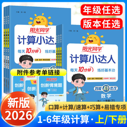 阳光同学计算小达人一年级二年级三年级四年级五年级六年级下册上册 2026 小学数学人教版北师版苏教版计算专项训练口算题卡小能手
