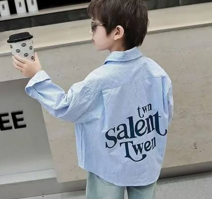 宝宝春季春款纯棉衬衫洋气儿童装男童秋装帅气婴幼儿韩版条纹外套