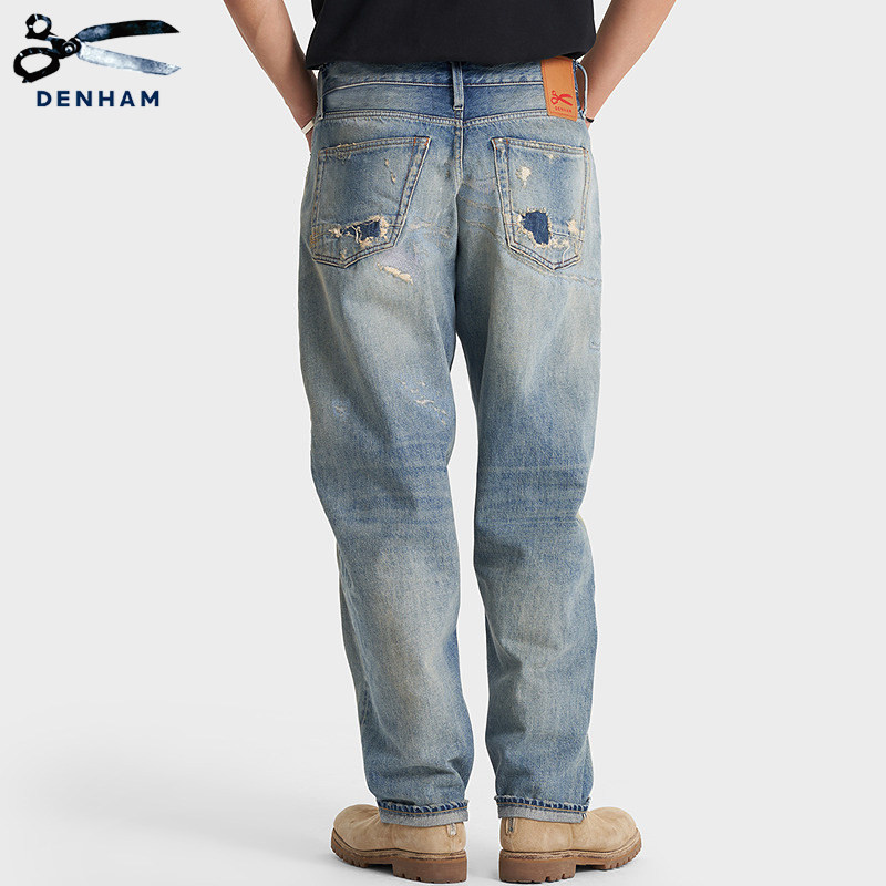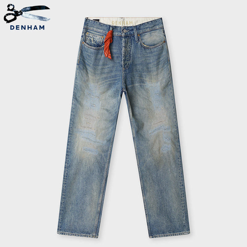 DENHAM春季男士复古宽松水洗微锥中腰剪刀牛仔裤RAG
