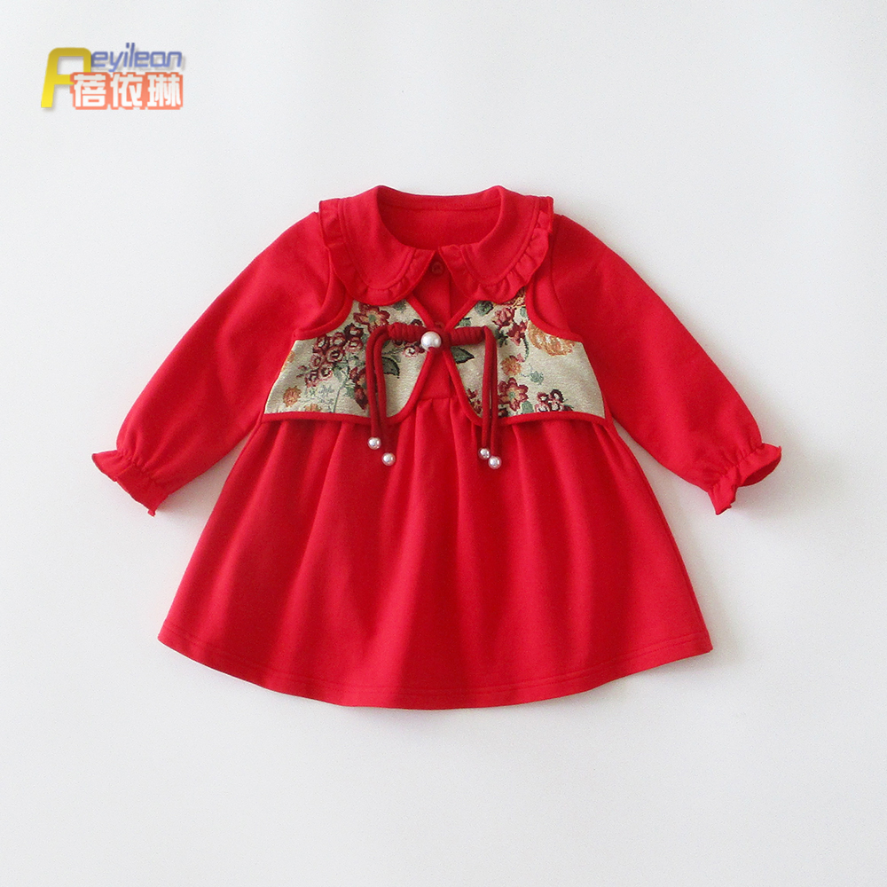 中国风小女童宝宝连衣裙子红色婴儿衣服装纯棉幼儿秋装1岁2春秋季