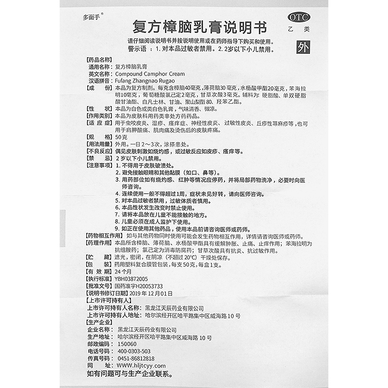 【乐龄】复方樟脑乳膏50g*1支/盒