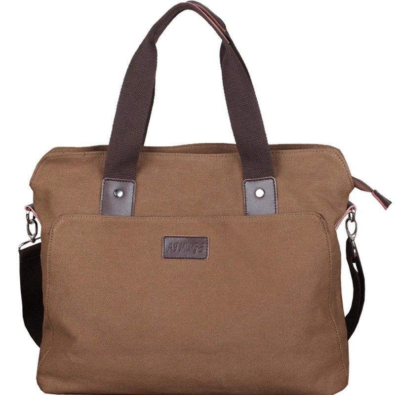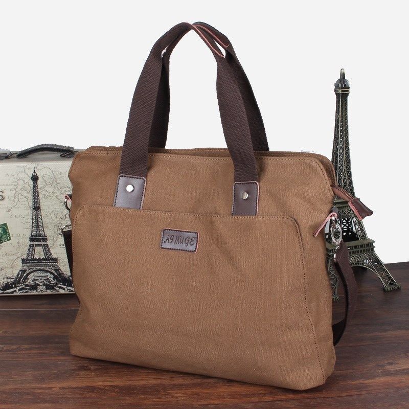 帆布英伦休闲男包横款商务手提包复古公文包男士单肩斜跨电脑包潮