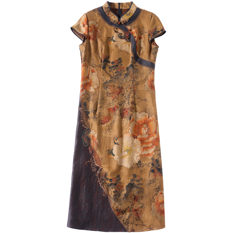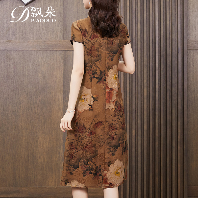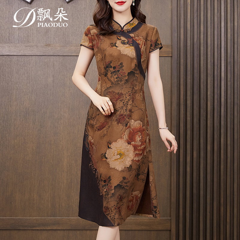 花罗香云纱真丝连衣裙2024夏季新款高端气质桑蚕丝阔太太旗袍裙子