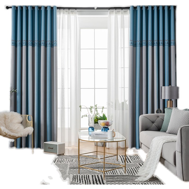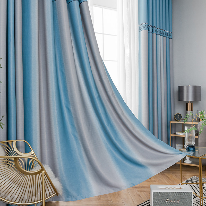 成品轨道式条纹印花主卧遮光窗帘