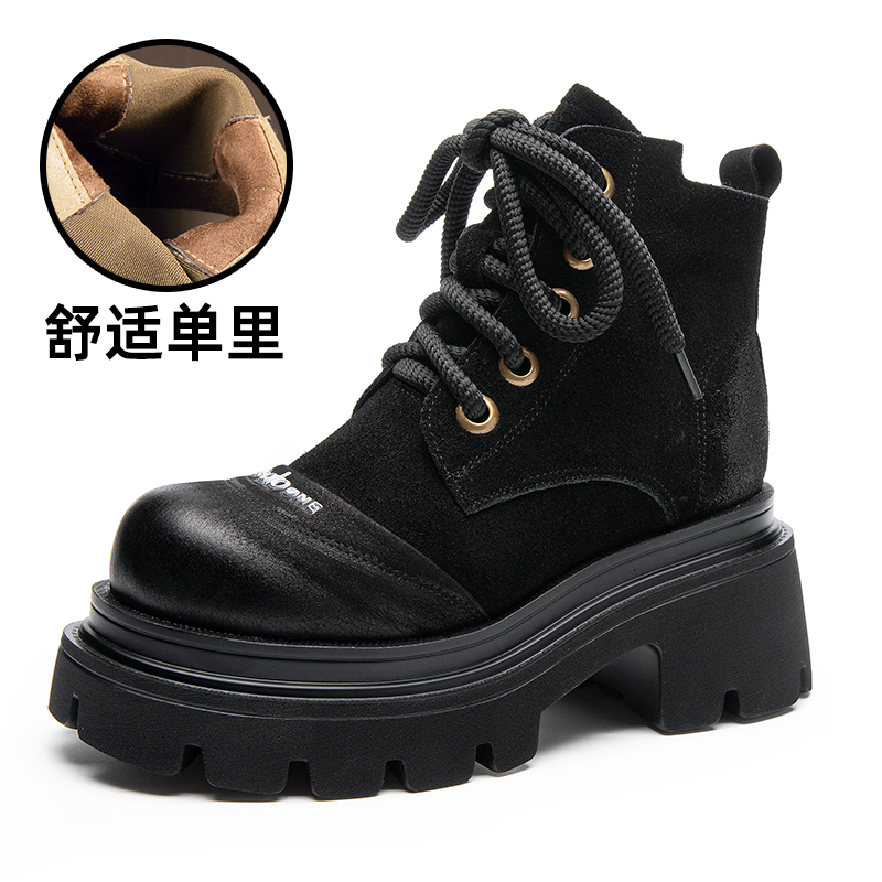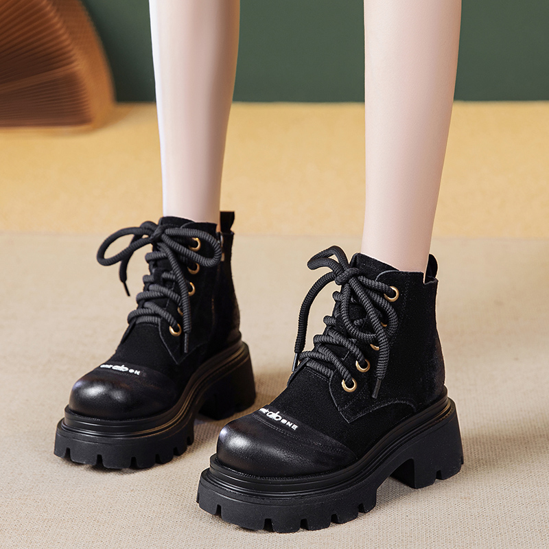 英伦风真皮粗高跟马丁靴女秋冬磨损牛皮短靴高帮时尚百搭休闲鞋子