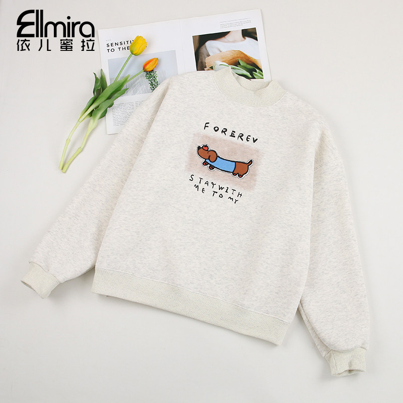 9738女童卫衣冬装加绒加厚一体绒圆领儿童上衣套头宽松洋气大童潮