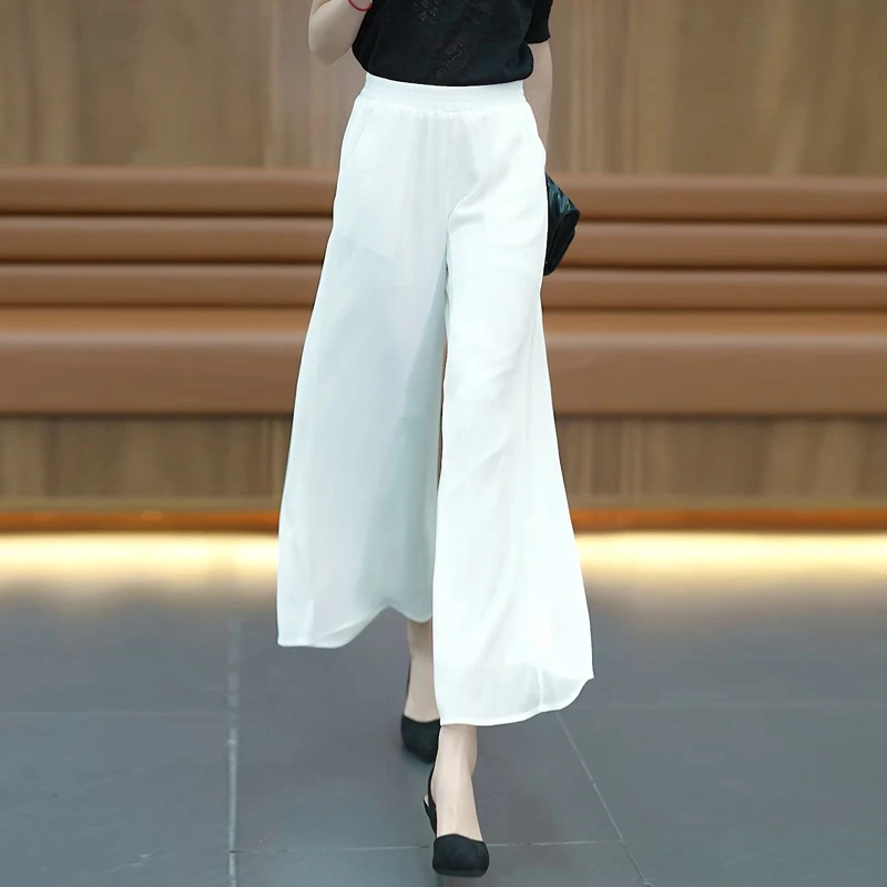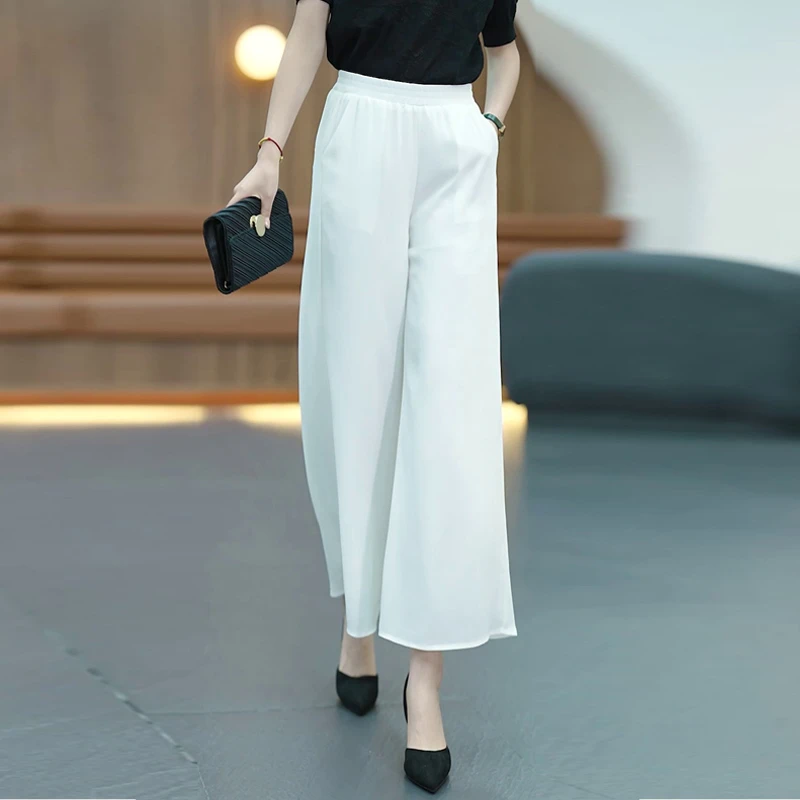雪纺阔腿裤女九分夏2025薄款宽松甩裤高腰垂感显瘦冰丝裙裤休闲裤