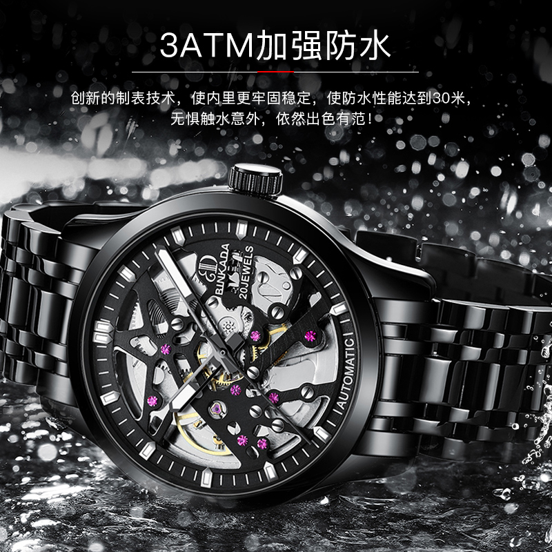 瑞士宾卡达手表男士全自动机械表十大正品名牌防水陀飞轮镂空男表