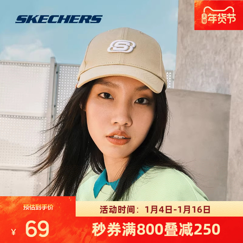 斯凯奇男女同款防晒帽遮阳帽运动刺绣鸭舌帽休闲情侣棒球帽