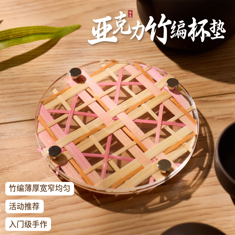 非遗创意亚克力竹编杯垫手工diy暖场活动礼品制作材料包儿童亲子