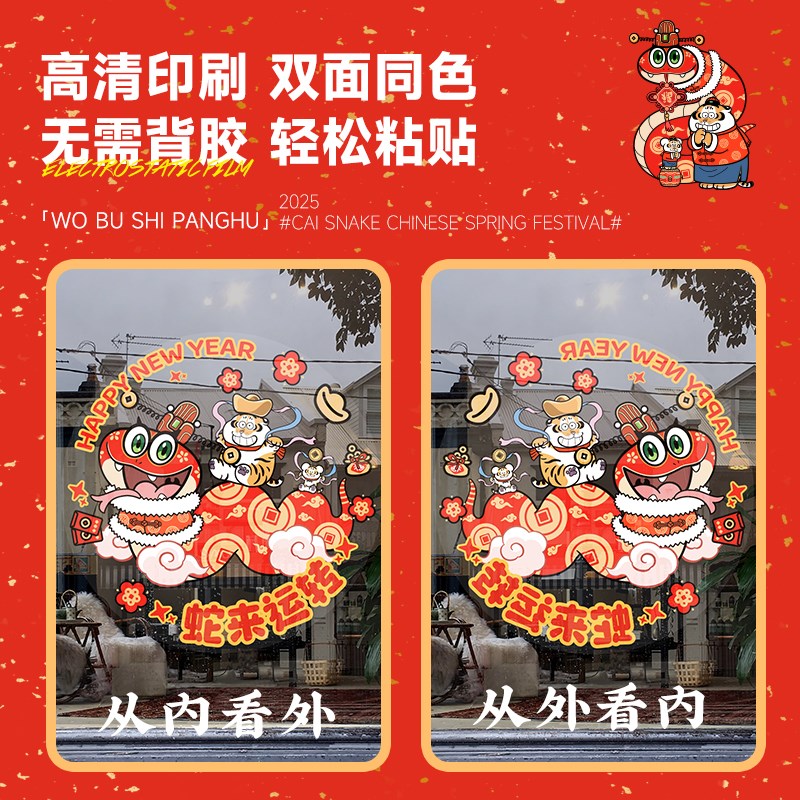 窗花2024年龙年春节装饰新年门贴窗贴福字新春过年玻璃贴画静电贴