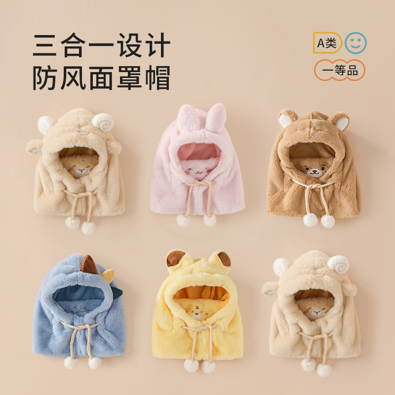 儿童帽子秋冬宝宝围巾围脖一体冬季女童口罩防风面罩保暖婴儿护脸