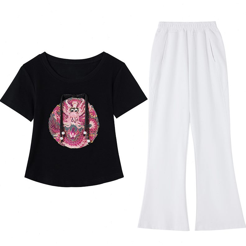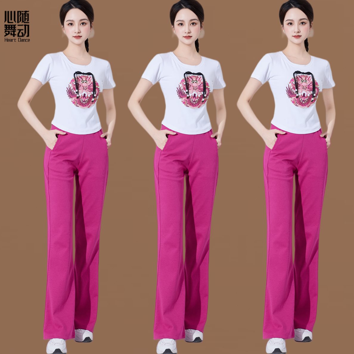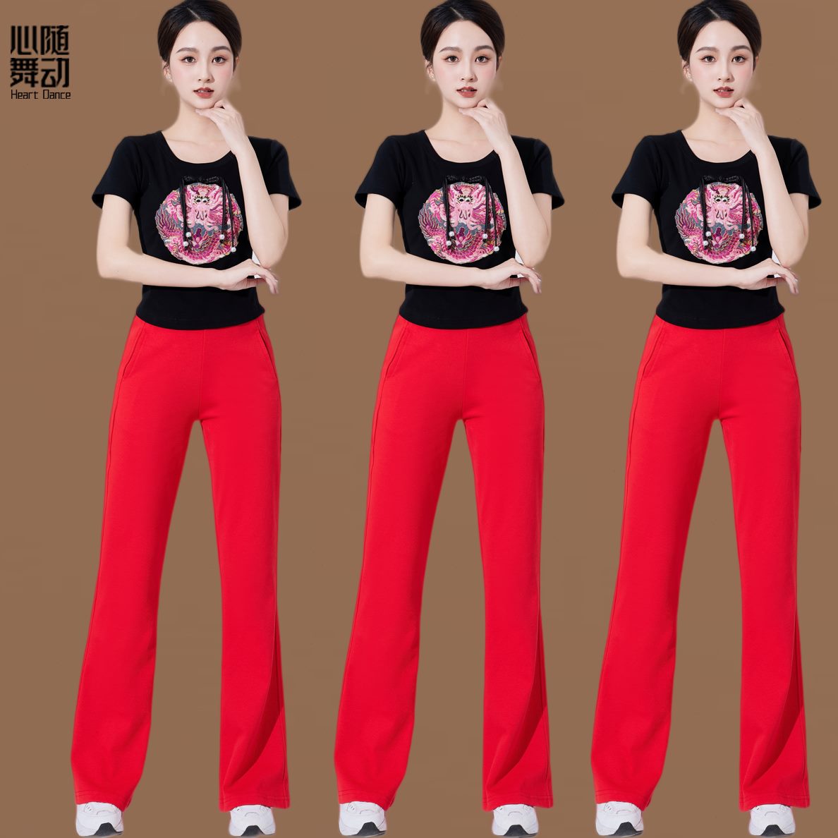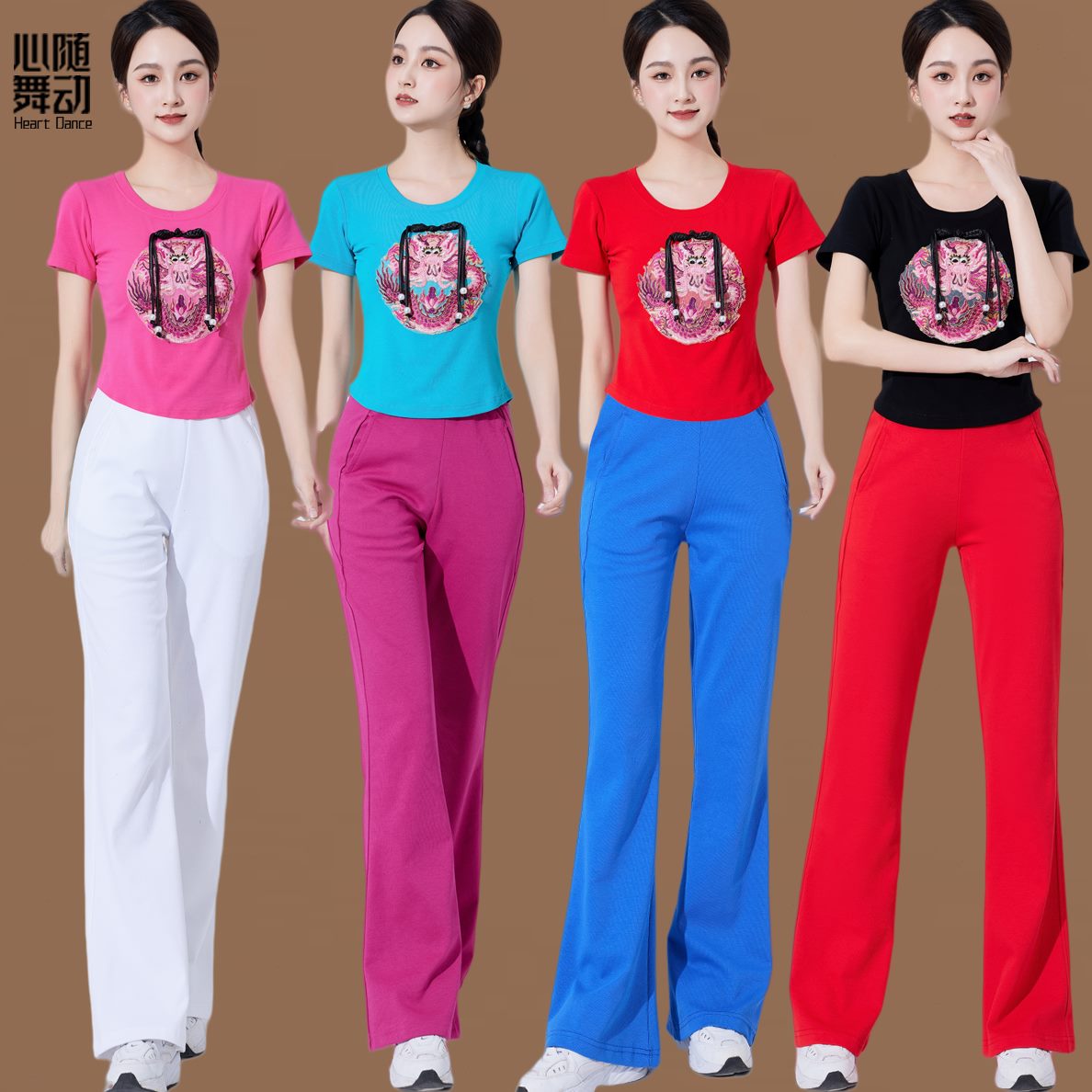 国风中式上衣表演服运动健身喇叭裤广场舞服装时尚操团体跳操大码