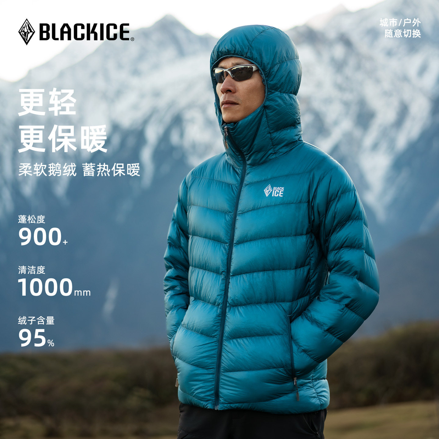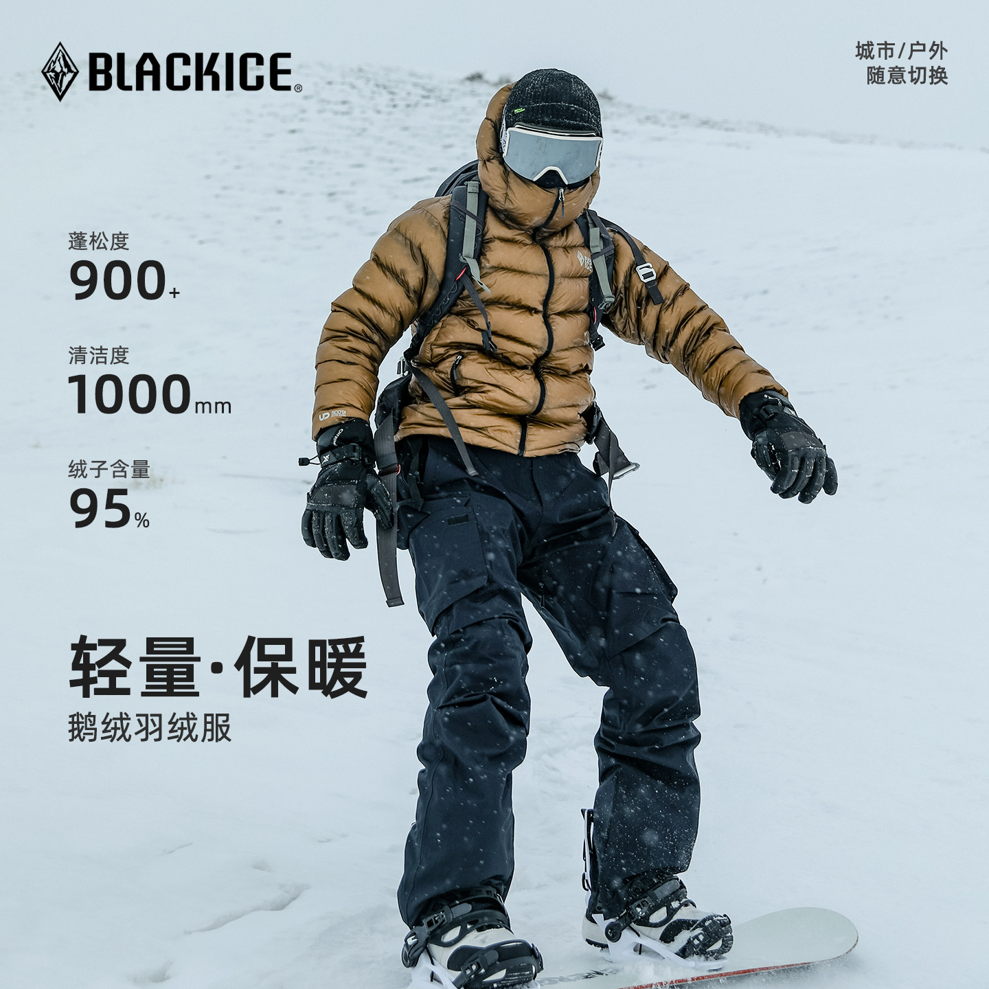 男士900蓬鹅绒羽绒服黑冰
