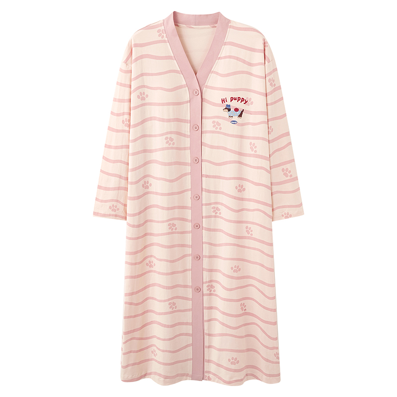 睡裙女士睡衣春秋季纯棉长袖开衫长裙可爱卡通全棉舒适休闲家居服