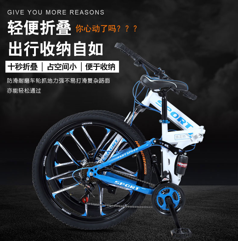 折叠山地车自行车男越野变速学生儿童双碟刹赛车202426寸成人单车
