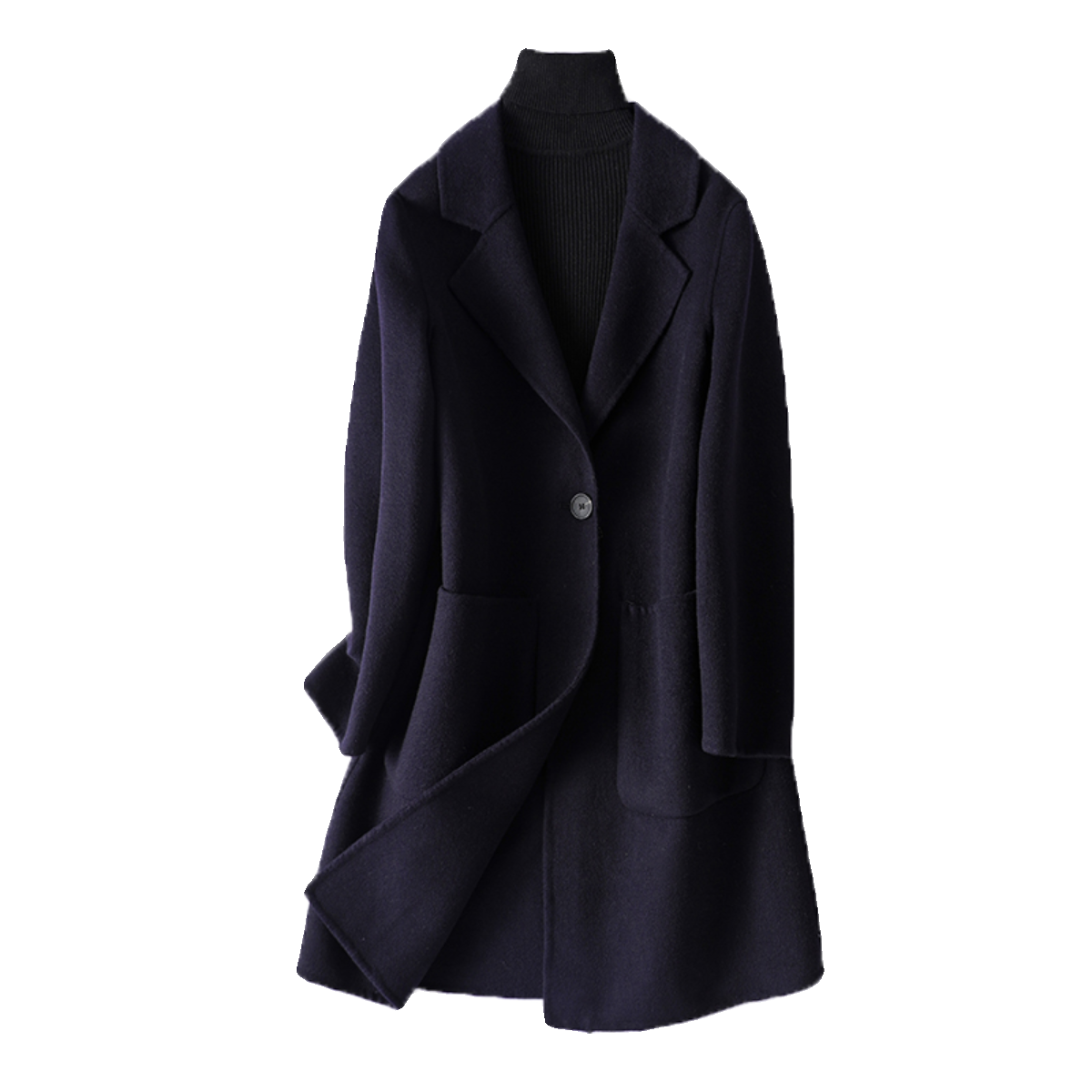 羊毛大衣女中长款西装领一粒扣双面呢子秋冬新款轻奢气质毛呢外套