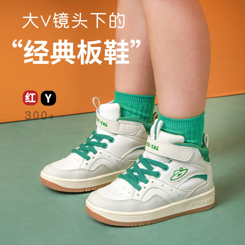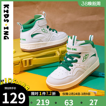 kidsing儿童高帮板鞋秋季男童鞋子运动女中大童软底防滑休闲童鞋