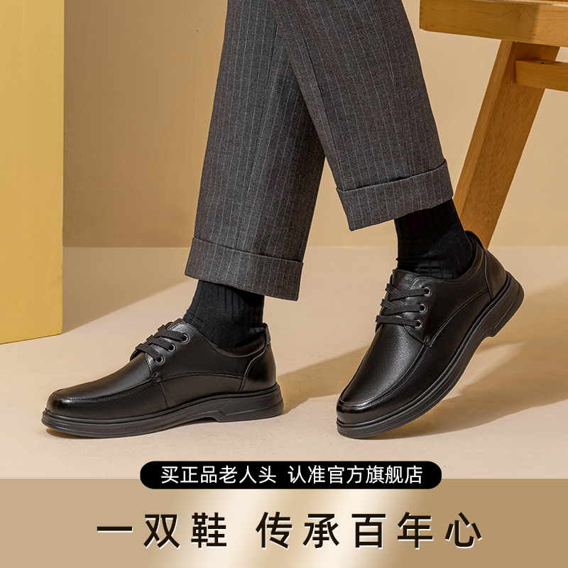 老人头商务休闲皮鞋男2025春秋季新款真皮软底中老年父亲爸爸男鞋