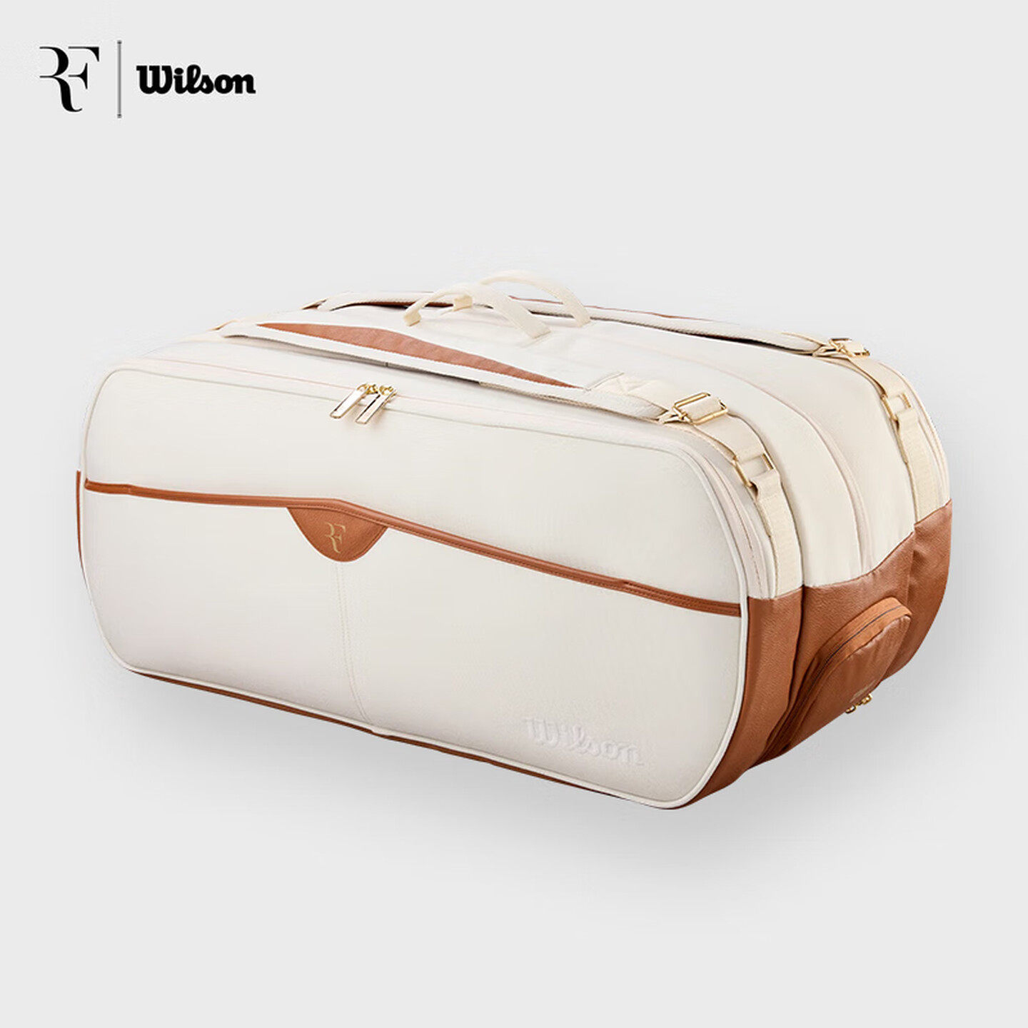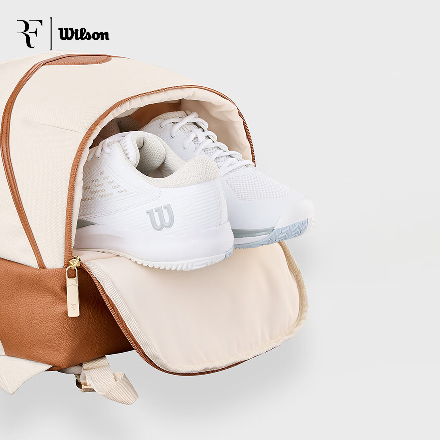 Wilson网球包25新款RF双肩包大容量运动背包米白色帆布专业网球包