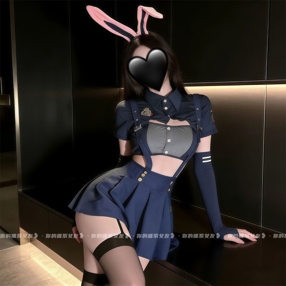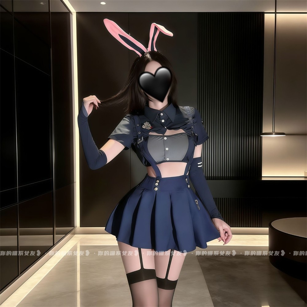 喵:兔子警官!性感纯欲短袖上衣短裙cos兔女郎制服角色扮演套装