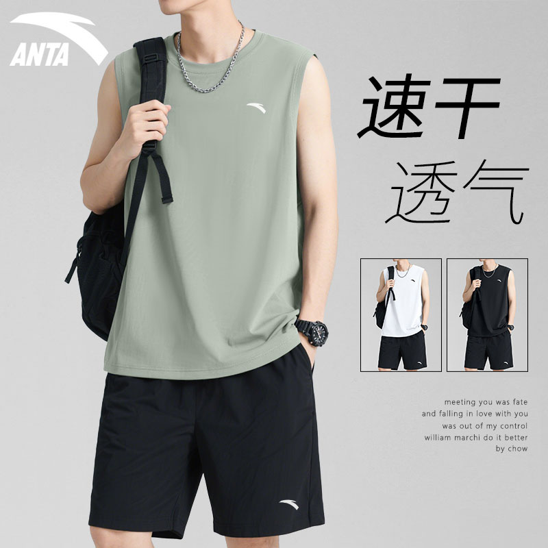 安踏无袖坎肩背心男套装篮球运动服夏季冰丝速干T恤薄款五分短裤