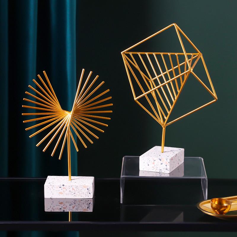 现代轻奢几何金属风铁艺术品电视柜装饰设铁制工艺客厅红酒柜摆件