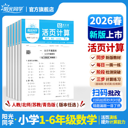 2026阳光同学活页计算小学一二三四五六年级上下册语文数学同步练习每日一练计算能手专项训练拼音词语字词句基础练人教北师苏教版