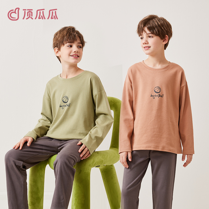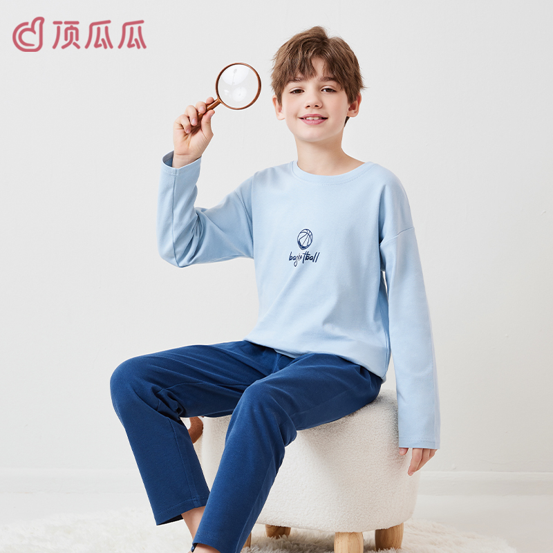 顶瓜瓜儿童睡衣男童家居服套装纯棉2025新款中大童男孩青少年秋冬